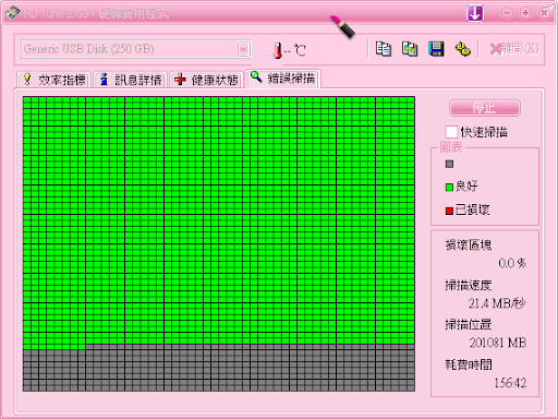 現在正用HD Tune硬碟實用程式檢測中