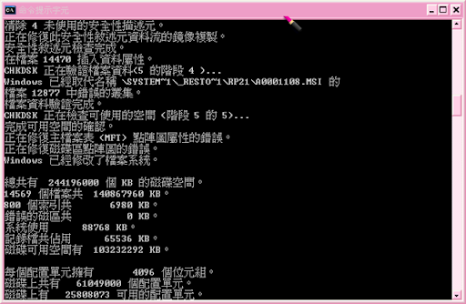 執行Chkdsk後,終於一切正常啦,我的影片檔也全都回來啦,萬歲!!